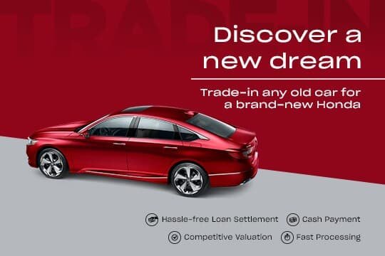 Discover a new dream by trading in any old car for a brand-new Honda and enjoy hassle-free loan settlement, competitive valuation, fast processing, and the option for cash payment—all designed to make your upgrade smooth and rewarding. Call 800 8123 today to avail the offer.