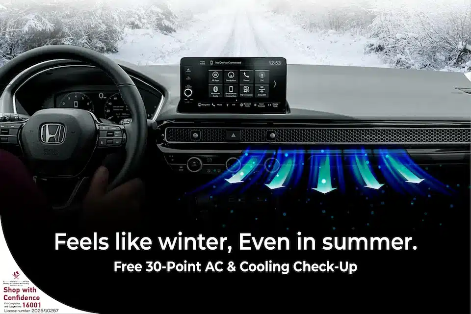 Enjoy incredible summer offers: Get a free 30-point AC & cooling check-up, take advantage of new prices on AC repair, parts, and labour, and window tinting at just QAR 1599. Benefit from new prices on batteries, half price on wheel alignment with replacement of 4 tyres (QAR 199/QAR 100), and free nitrogen with every tyre replacement. Plus, don’t miss the new prices for polishing and detailing. Offer valid from 12th June to 31st August 2025 — drive cool this summer!