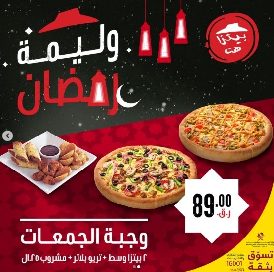 Any 2 large pizzas at a special price (Does not include stuffed crust pizzas) for only QAR 89