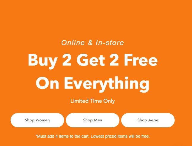 Check out the Buy 2 Get 2 free offers on fashion for men, women and kids at American Eagle Outfitters. Click here to shop online.