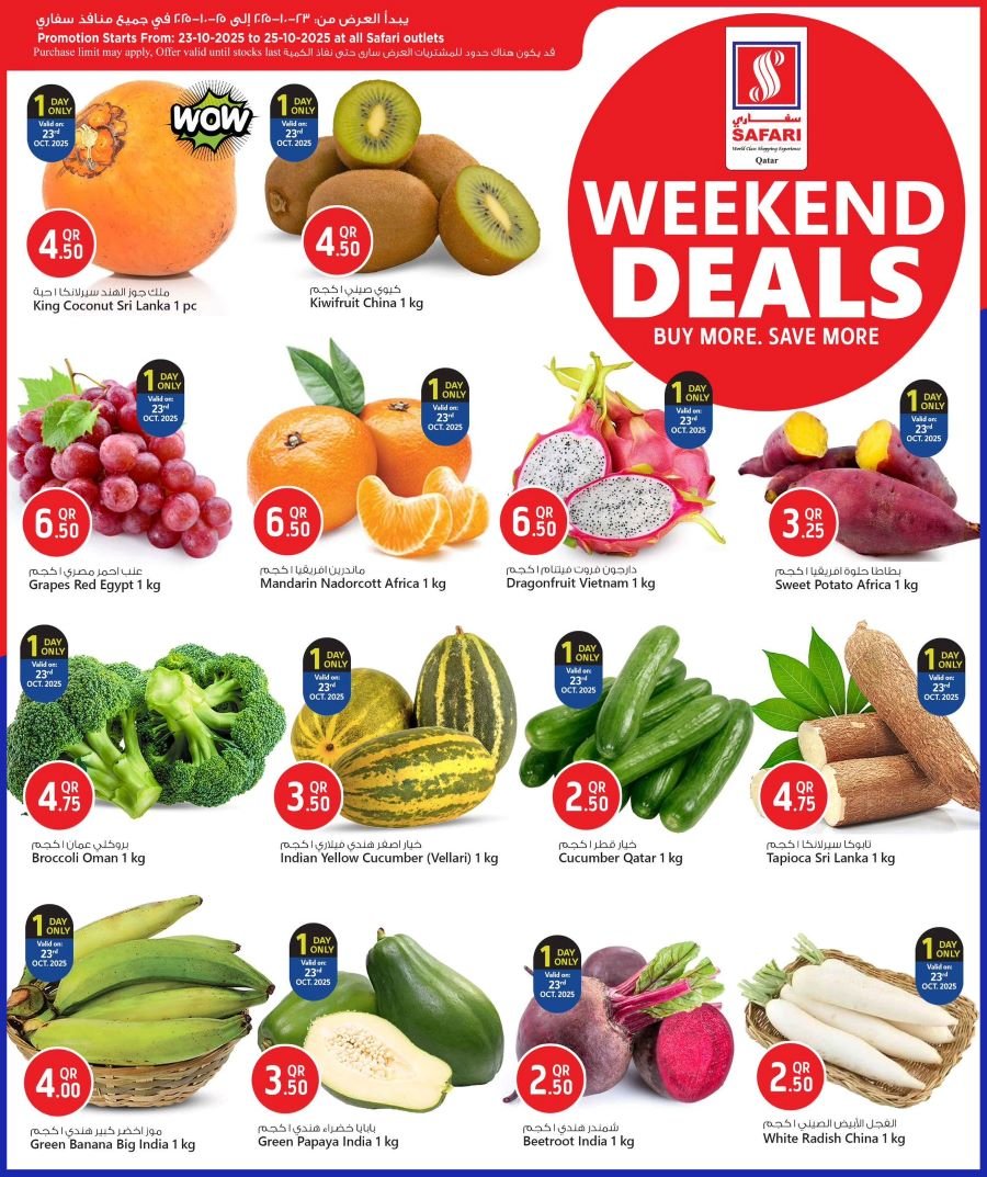 Shopping Safari Hypermarket Weekend deals ByTinu paul October 22, 2025October 23, 2025 Super Weekend Savers are here at Safari! Get unbeatable offers on groceries, fresh food, household items, cosmetics, garments, home appliances, and so much more! Promotion Period: 23rd to 25th October 2025